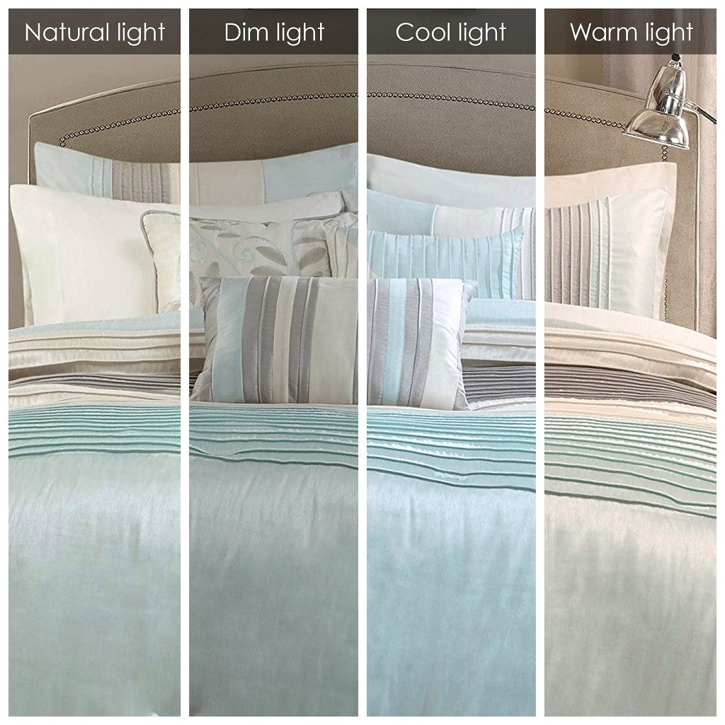 • Transitional style 7 piece comforter set in pintucking and embroidery details