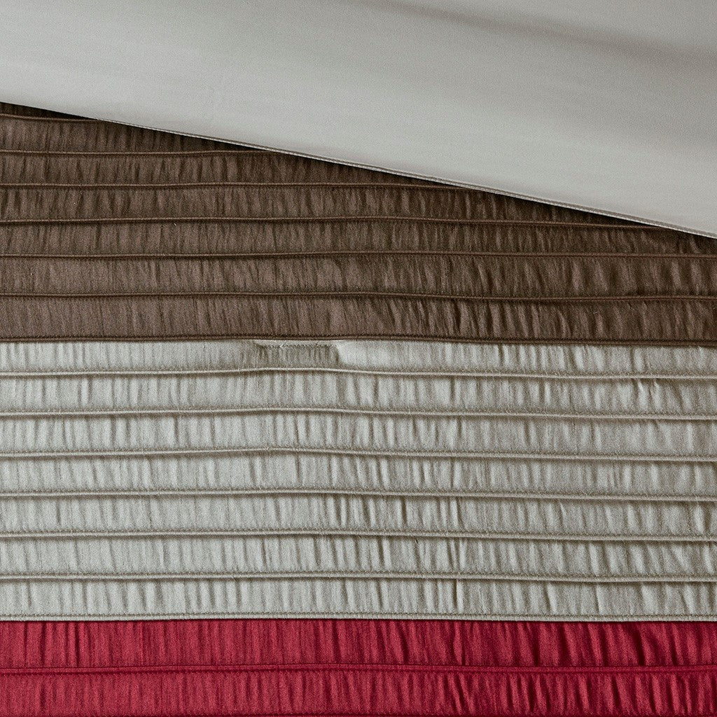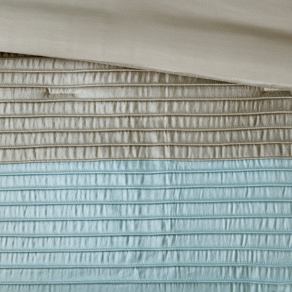 • Pieced faux silk face fabric in complimentary colors with pintucking