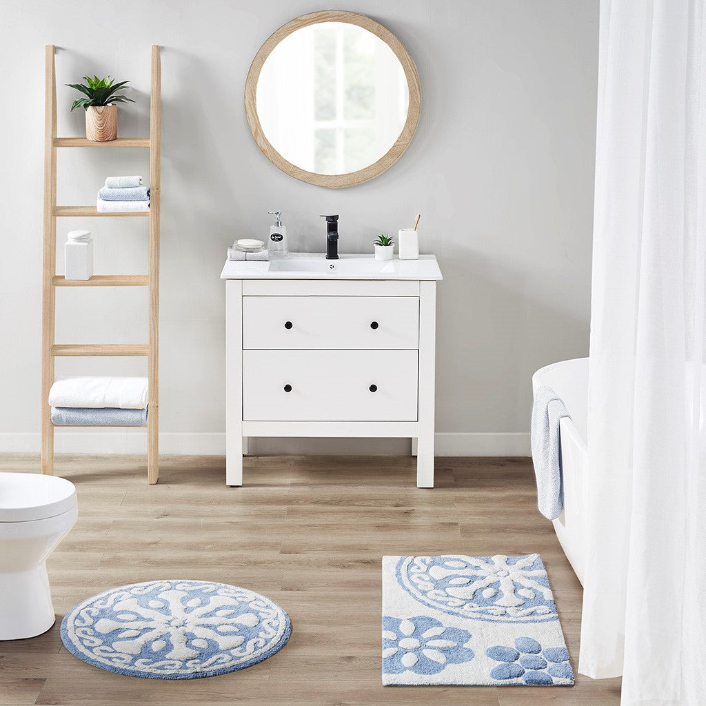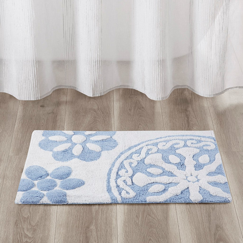 • Global inspired medallion cotton tufted bath rug