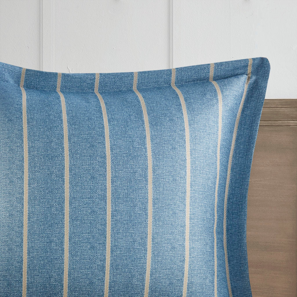 12x18" pillow: 100% polyester textured base cloth printed stripe pieced with cotton textured solid face; Cotton textured solid back