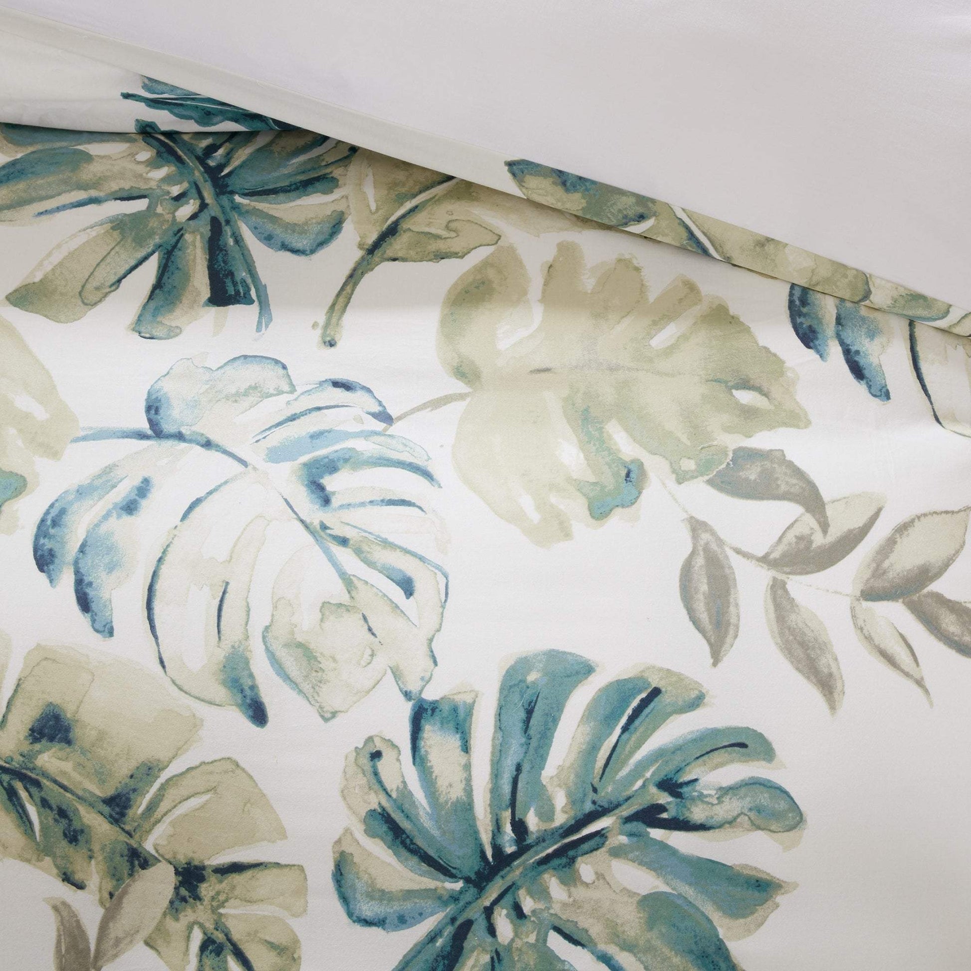 Awake in paradise with the Harbor House Lorelai 6 Piece collections/comforter-sets/products/madison-park-aphrodite-red-7-piece-comforter-set">Comforter Set. Showcased against a crisp white ground, gorgeous hues of green and blue compose a lush coastal pattern of oversized tropical plants. Two individually hand-cut shams bring the coastal pattern to the head of the bed, while the blue bed skirt adds a pop of color to the ensemble. Two decorative pillows follow the green and blue color palette and the coastal motif to pull the entire look together. This bedding set is also OEKO-TEX certified, meaning it does not contain any harmful substances or chemicals, ensuring quality comfort and wellness.